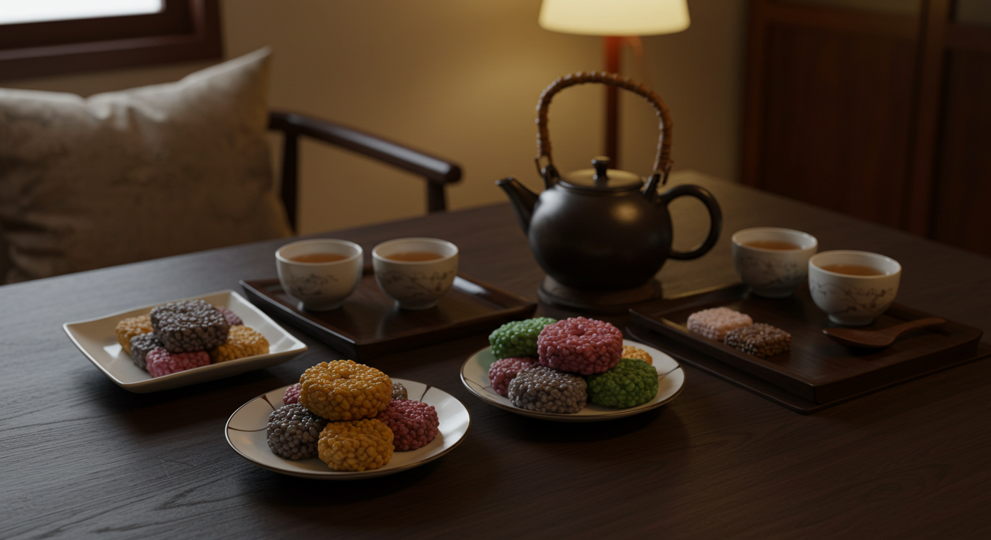 - 전통 다과상: 다식 + 녹차